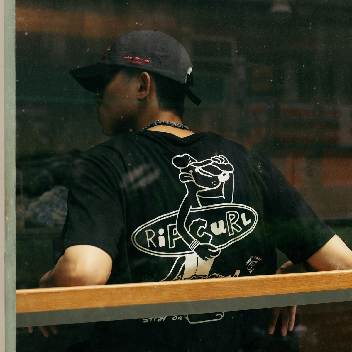 In this latest release, Rip Curl teams up once again with celebrated Malaysian graffiti artist Kenji Chai—known for his bold character Chaigo the Stray—to create a collection that fuses beachside energy with urban expression. The drop features two exclusive designs, created in Kenji’s signature style while keeping Rip Curl’s identity as The Ultimate Surf Company.